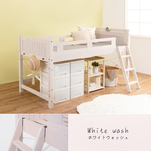 ■ロフトベッド ホワイトウォッシュ MB-5080-WS-S (約)幅106×奥行210×高さ122×床面高82.5cm 【北海道・沖縄・離島 送料別】