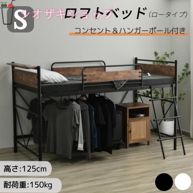 ロフトベッド ロータイプロフトベッド システムベッド パイプベッド ミドルタイプ ハンガーポール4本付属 耐震ベッド シングルベッド コンセント付き 宮棚 耐荷重150kg 子供ベッド 二段ベッド 子供部屋 スチール 北欧 ひとり暮らし 新生活