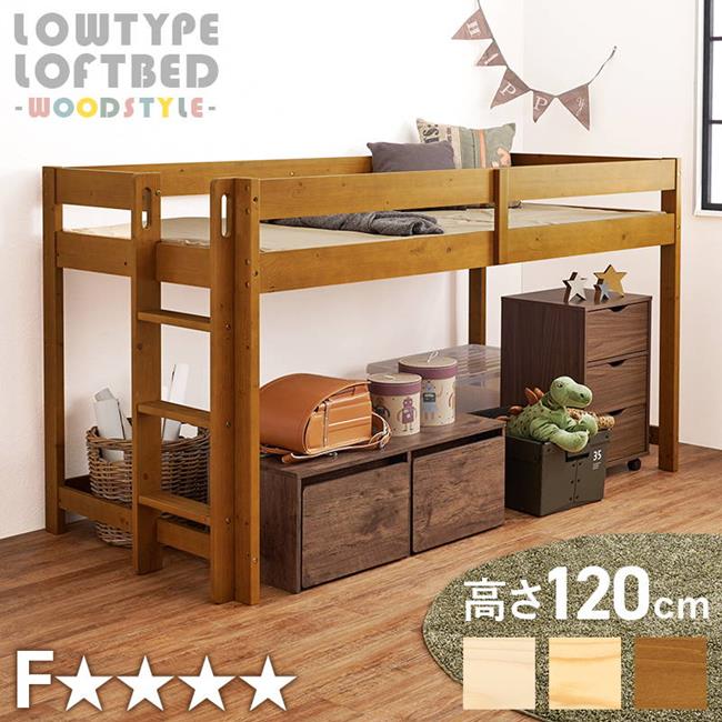 ■ロフトベッド 低め ロータイプ 高さ120cm 耐荷重250kg 省スペース垂直ハシゴタイプ 天然木 木製 低ホルムアルデヒド
