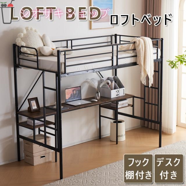 ロフトベッド パイプベッド 耐震ベッド シングルベッド 二段ベッド デスク付き ラック棚付き ハシゴ階段 子供部屋 大人ベッド システムベット 金属 ベッドフレーム おしゃれ 北欧風 一人暮らし