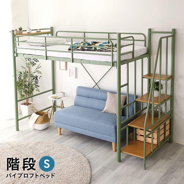 ロフトベット 頑丈 丈夫 耐荷重 大きめ 宮付き 階段 ハシゴ 調節 一人暮らし 省スペース スリム コンパクト キッズ パイプベッド
