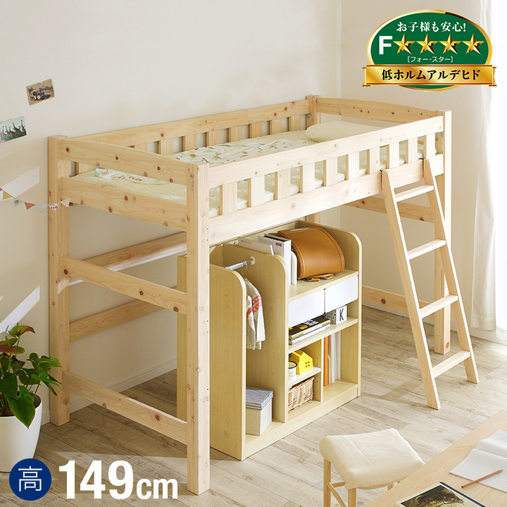 ■【5年保証/国産/熊本県産ヒノキ使用】ロータイプ ロフトベッド 香(コウ) H149cm ロフトベット ロフト ベット すのこベッド すのこ 子供用