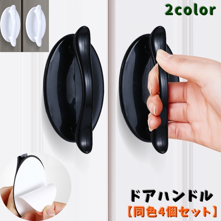 ■ドアハンドル 同色4個セット 取っ手 引き戸 ツマミ スライドドア用 取手 持ち手 工具不要 粘着タイプ 棚 引き出し おしゃれ