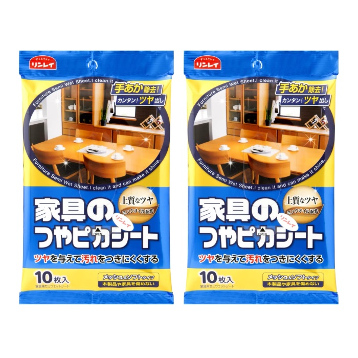 ■【2セット】 リンレイ 家具のつやピカシート 10枚入 掃除シート ウェットシート 木製家具 テーブル 棚 ツヤ 不織布 自宅 掃除