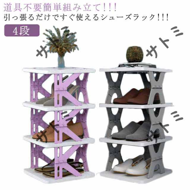 スペース スリム おしゃれ 玄関収納 ラック 棚 折り畳み おしゃれ 折りたたみ シューズラック 靴箱 4段 玄関家具 靴棚 収納ボックス 伸縮 省スペース マルチラック コンパクト 省 オープンシェルフ 下駄箱