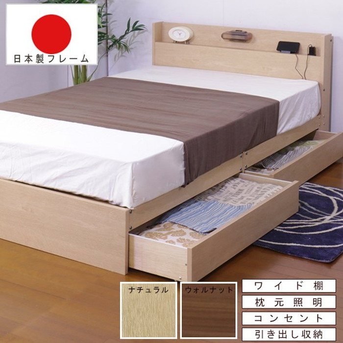 [商品説明]棚 照明 コンセント 引出付きベッド セミダブル SGマーク付国産低反発ウレタン入ポケットコイルスプリングマットレス付■商品説明■フレーム寸法/幅117×奥行208×高さ70cm MH約48cm■引出し内寸/W約93×D約36×H約10cm 2杯■マットレス寸法/幅120×奥行195×高さ23cm■本体主材/プリント化粧板■マットレス主材/1.9mmポケットコイルスプリング(コイル数630個)30t厚低反発ウレタンフォーム、ウレタンフォーム、抗菌・防臭フェルト、ポリエステル綿混合張地、両面多針キルティング加工■生産国本体/日本マットレス/日本※こちらの商品はお客様組立商品となります。※大型商品の為日時指定不可となります。[送料]全国一律送料無料※こちらの商品は北海道・沖縄・その他離島は配達不可となります。【離島・日時指定不可】[備考]※お急ぎの場合は必ず事前に在庫確認を行って下さい。※メーカー倉庫より直送になります。※出荷までに1週間程度お時間がかかる場合がございます。