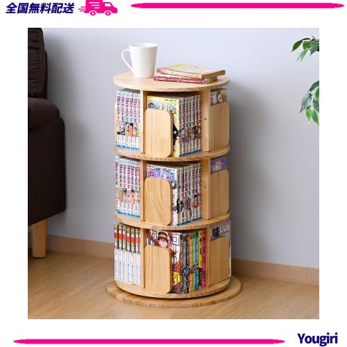 ◆商品名:[山善] 本棚 回転式本棚 3段 丸型 コミックラック 360度回転 大容量 天然木 漫画 ラック 棚 直径42cm×高さ67cm ブックシェルフ 組立品