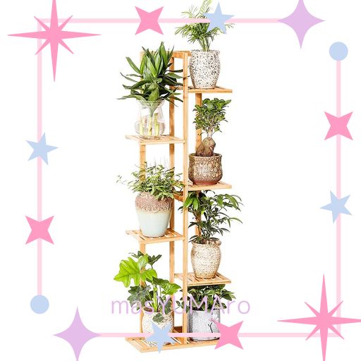 ■UNHO フラワースタンド フラワーラック 竹製 花台 6段 高い スリム ガーデニング 棚 観葉植物 植木鉢 鉢 盆栽 台 室内 屋外 ナチュラル