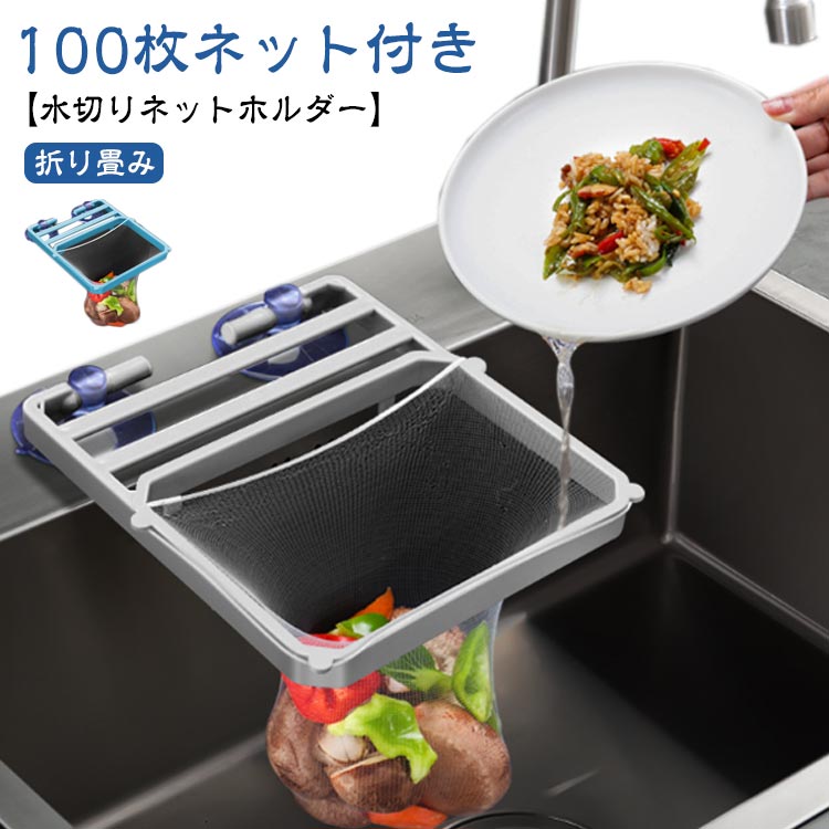 ■【ネット100枚付き】水切りネットホルダー 三角コーナー 水切りネット 棚 折りたたみ 袋 三角コーナー いらず 浮かせる ホルダー 本体 シ
