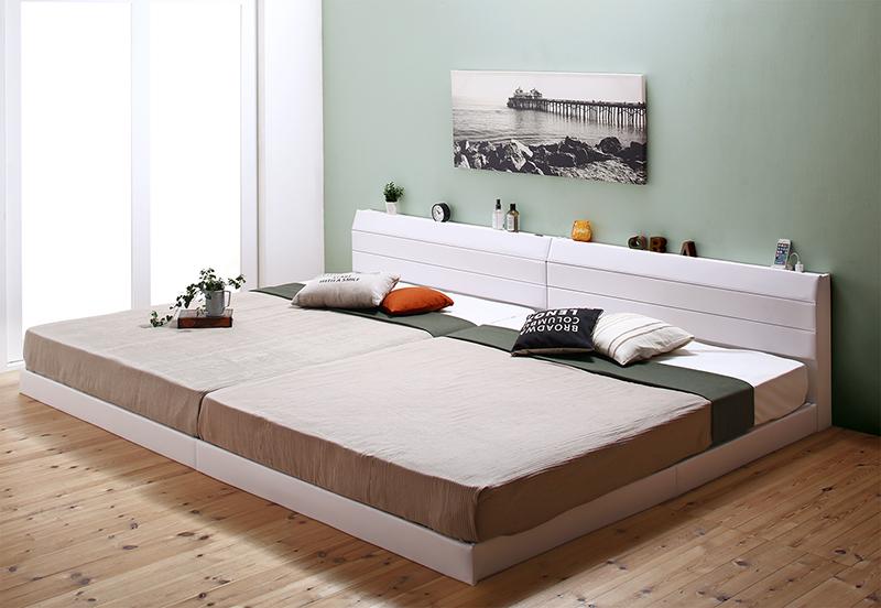■親子で寝られる 棚・コンセント付き レザー連結ベッド 〔Familiena〕ファミリーナ 〔国産ボンネルコイルマットレス付き〕 ワイドK220(S+S