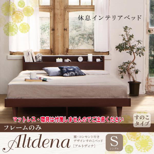 ■【送料無料】棚・コンセント付きステーションすのこベッド【フレームのみ】シングル