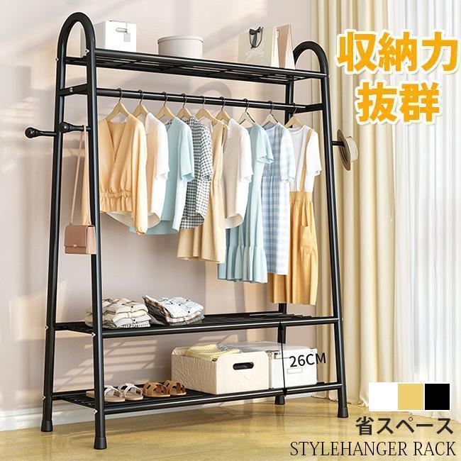 ハンガーラック スリム パイプハンガー 2段 3段 頑丈 コートハンガー 洋服掛け 衣類収納 整理 洋服掛 大容量 収納 棚 ラック 服かけスタンド