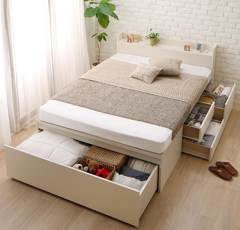 ■〔組立設置料込み〕国産 棚・コンセント付 ワイド深型引き出し チェストベッド Lage ラージュ 〔薄型スタンダードボンネルコイルマットレ