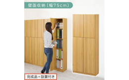 ■【ふるさと納税】【完成品+設置付き】壁面収納〔幅75cm・本体〕(ナチュラル)壁面収納 本棚 扉付き 収納 棚 cdラック dvdラック 収納棚