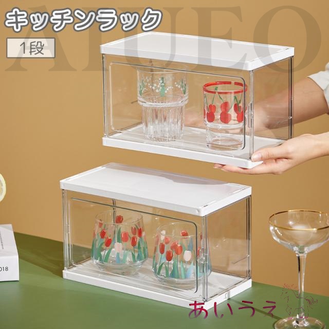 キッチンラック 食器棚 収納ラック 棚 見せる収納 中身が見える 透明 クリア 蓋付き 防塵 積み重ね 整理 整頓 組み立て式