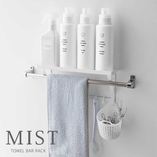 ■山崎実業 タオルバーラック ミスト タオル掛け上ラック ホワイト 4240 | バストレイ 棚 バス用品 差し込み