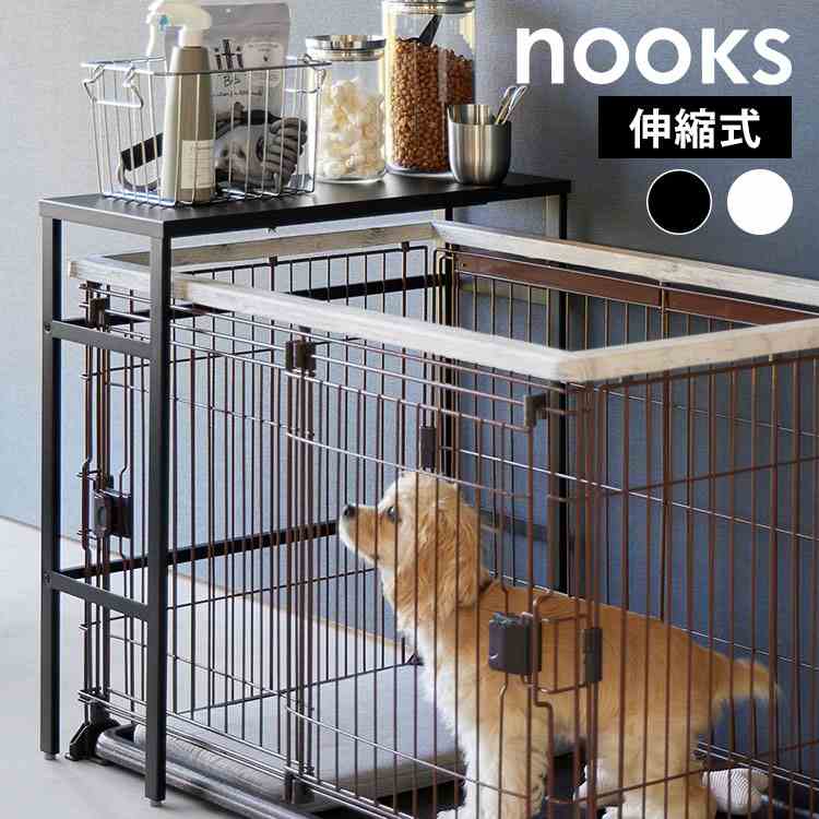 ■山崎実業 伸縮ペットケージ上ラック ヌークス 4086 4087 ホワイト ブラック nooks 公式 犬 ペット ケージ ペットサークル 収納 ラック 棚