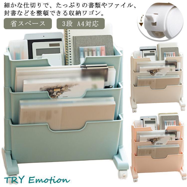 ■ファイルワゴン マガジンラック スリム 3段 キャスター 本棚 棚 移動 小物収納 文房具収納 書類整理 収納棚 ファイル立て 雑誌収納 本収