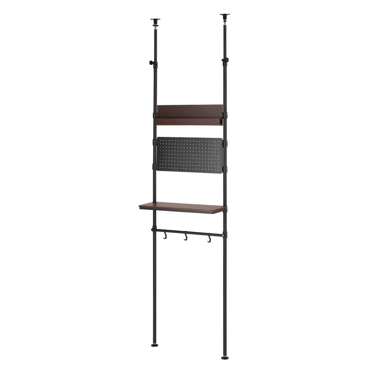 ■ドウシシャ ルミナス ノワール 突っ張り ラック つっぱり 棚 幅60 壁面収納 ウォールラック 簡単取付 段差対応 有孔ボード S字フック付き