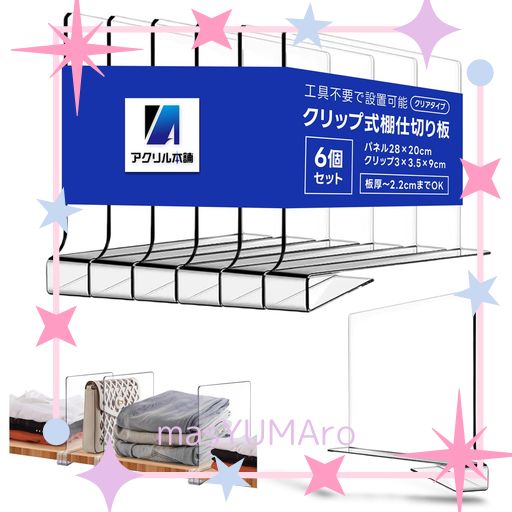 ■アクリル本舗 収納 仕切り パネル 棚 パーテーション オーガナイザー クローゼット 本棚 整理 整頓 隔断 (クリア, 6個セット)