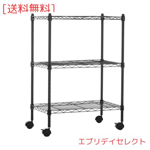 ■Amazonベーシック 3段スチールラック 棚 メタルラック キッチンラック キャスター付き 耐荷重68kg 幅58.9×奥行34×高さ83cm ブラック