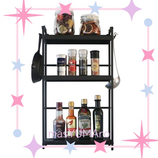 ■ラッキーシン コンロ横ラック 調味料ラック3段 幅35CM フック付き コンロ隙間ラック キッチン収納 調味料棚 キッチン 棚