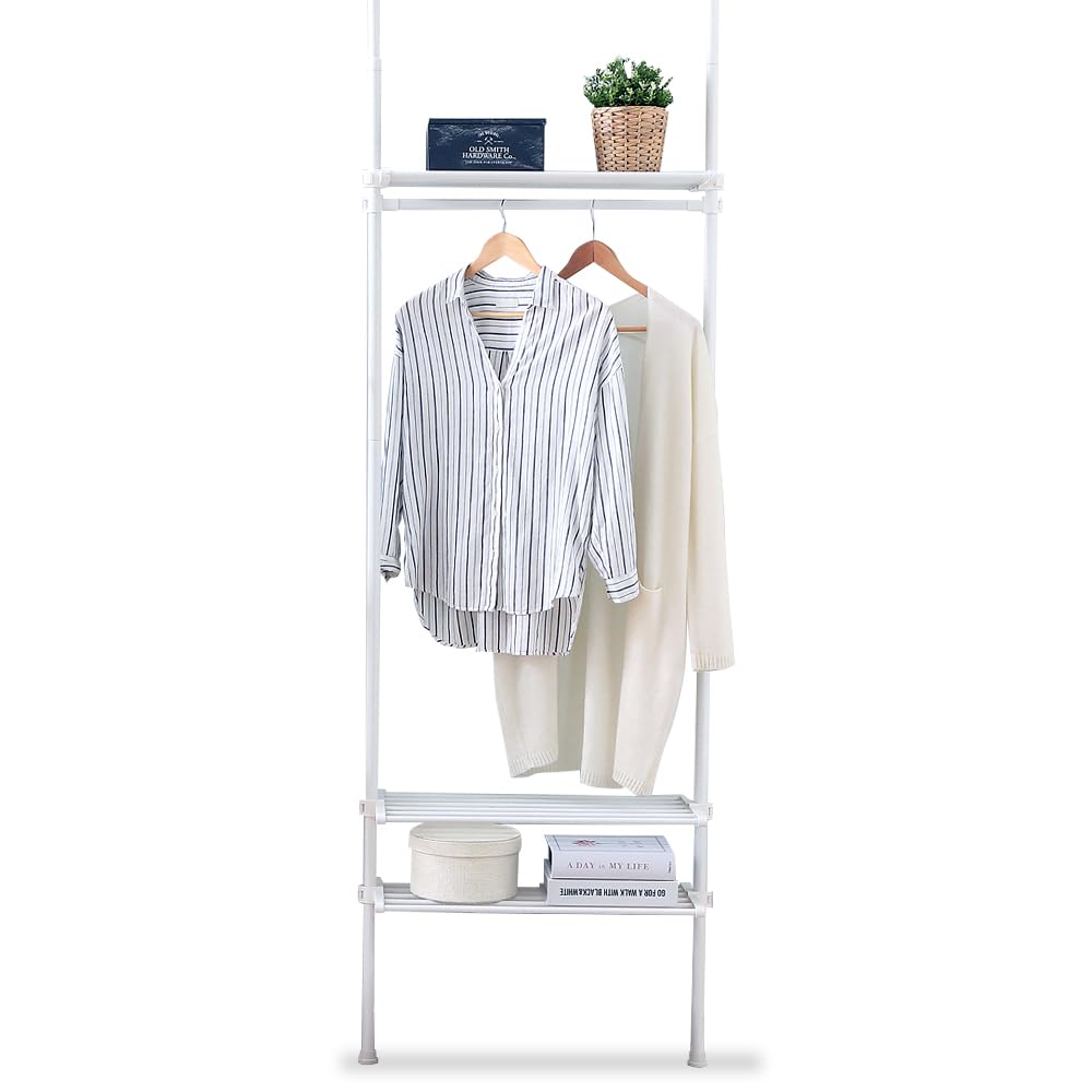 ■【洗面所でのタオルハンガーにも】アイリスプラザ ラック 棚 壁面 耐荷重各5kg 天井170~260cm対応 幅80 ホワイト TWR-800