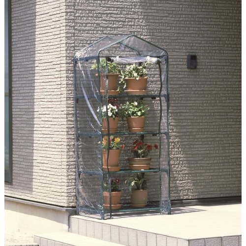 ■グリーンライフ ビニール温室 棚4段 簡単組立 工具不 ースタンド W69×D49×H158cm BO-004H