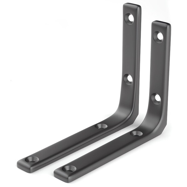 ■Homeme 棚受け 金具 L字型 ブラケット ステンレス製 耐荷重25-75KG 2本入 壁 棚 棚支え 金具 ネジ付 ブラック 15cm