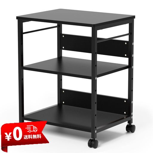 ■DEWEL プリンタ台 プリンタラック 幅50 奥行40 高さ64CM プリンター ワゴン 棚 3段 サイドワゴン キャスター付き コピー機台 デスク下 収