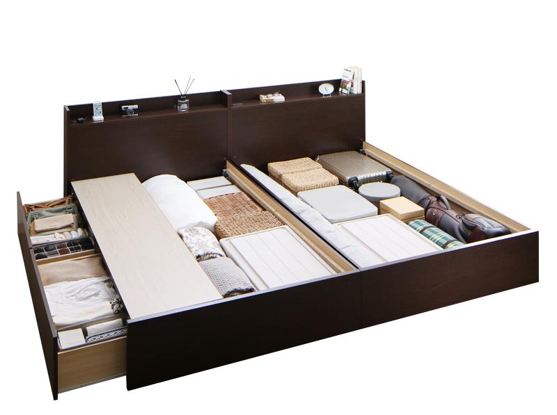 ■ベッド 連結ベッド ワイドキング 240 SD+SD セミダブル+セミダブル ポケットコイルマットレス付き グレージュ 低床 連結 ロータイプ 棚