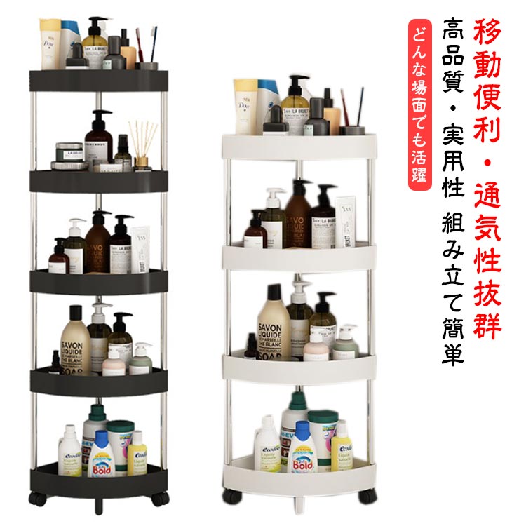 コーナーラック 4段 5段 オープンラック キャスター付き 角置き バスラック 水切り 防水 コーナー 棚 ラック 浴室 バス キッチン ワゴン 収納ラック 収納棚 花台 多目的 コーナーシェルフ 三角コーナー スリム おしゃれ ホワイト ブラック