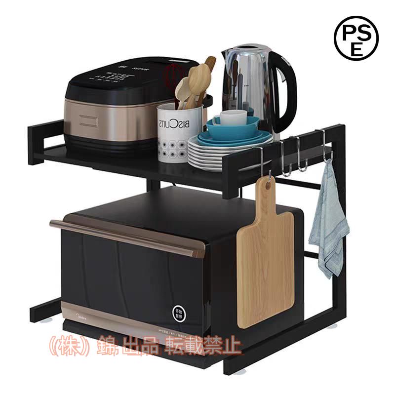 ■レンジ台 電子レンジ上ラック 幅伸縮式 2段式 キッチン 収納 棚 トースターラック 調理家電ラック 株式会社錦ステンレス製 ブラック シ