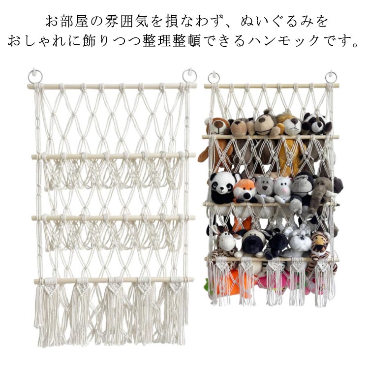 ■ぬいぐるみ 収納 ハンモック 3段 おもちゃ 収納 棚 見せる収納 おしゃれ 木製 ぬいぐるみ収納 収納ネット ぬいぐるみネット 子供部屋 整