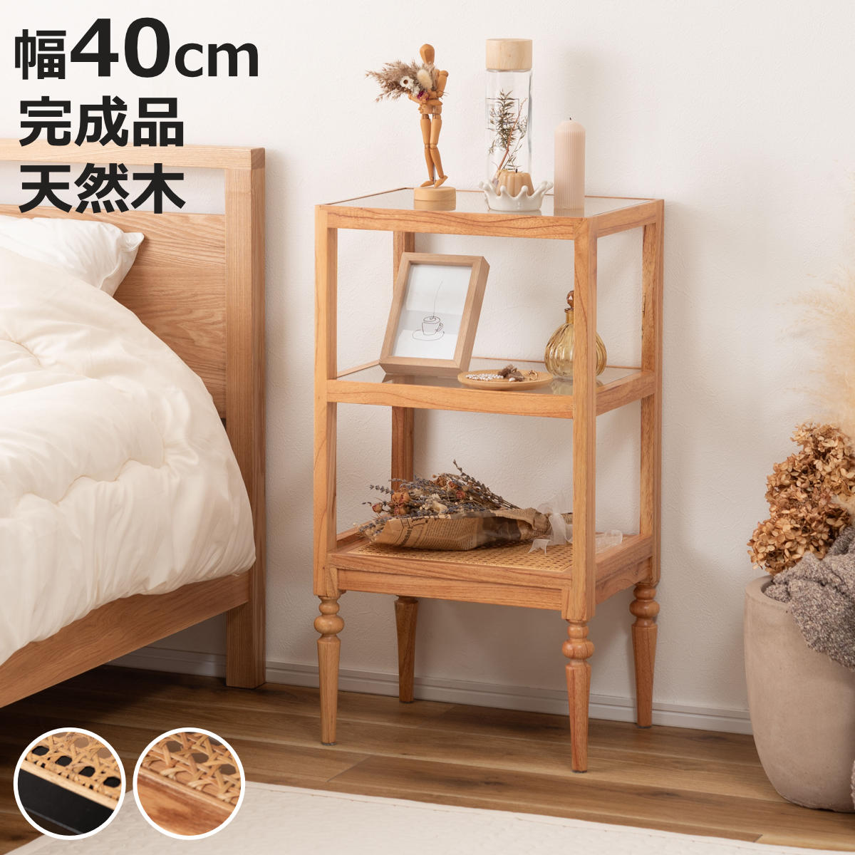 ■オープンシェルフ 幅40cm 2段 天然木 ろくろ脚 ラタン 完成品 ( ラック ディスプレイ フリーラック シェルフ 棚り棚 飾る 棚 籐 籐製 か