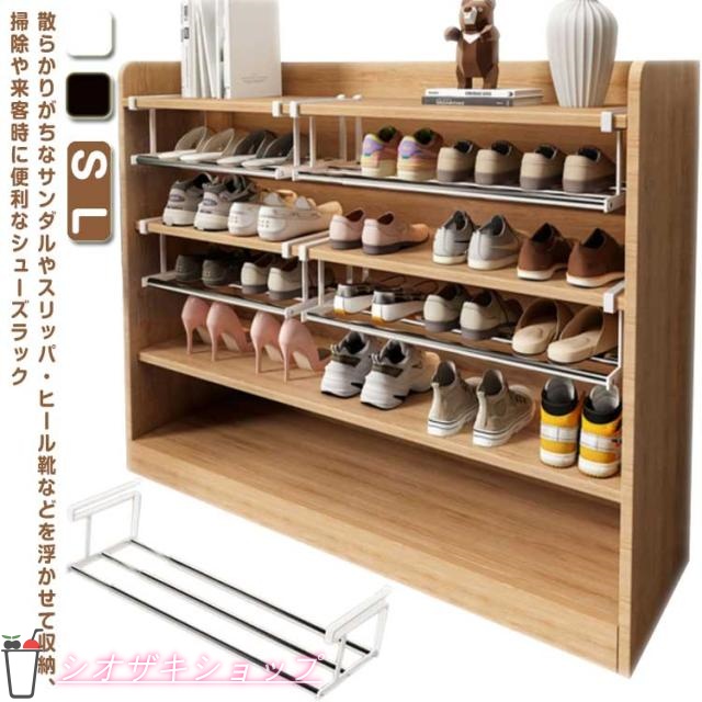 浮かせる伸縮シューズラック 靴収納 シューズラック 下駄箱 棚 玄関 靴箱 靴棚 シューズクローク 省スペース 狭い 伸縮 下駄箱下 靴箱下 玄関収納 ラック 靴 スニーカー スリム コンパクト 引っ掛け式 吊り下げ おしゃれ