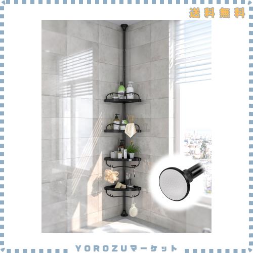 ■浴室 ラック な4段式ABSプラスチック製カゴシャンプーラック 140-310 cm調節可能コーナー 棚 穴あけ不要のシャワーラック 大容量室内用お