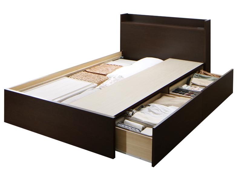 ■連結 棚・コンセント付き 収納ベッド 〔Ernesti〕エルネスティ すのこ仕様 〔ベッドフレームのみ・マットレスなし〕 Aタイプ シングル 〔
