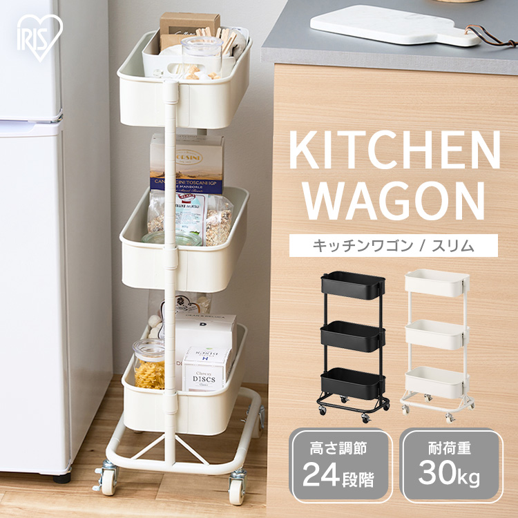 ■ワゴン キッチンワゴン キャスター付き 3段 スリム スチール おしゃれ 隙間収納 ラック 棚 スチールワゴン 高さ調整 キッチン 洗面所 ラ