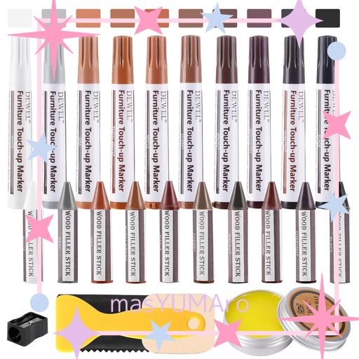 ■DEWEL 木製品キズ補修セット 家具 補修ペン 家具補修マーカー フローリング補修 10色補修ペン 10色補修棒 床 ドア剥がれ 棚 家具補修 キ