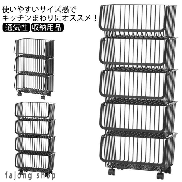■キッチンワゴン 3段 4段 5段 キャスター付き ラック キッチン 棚 収納メッシュ バスケット 収納用品 隙間 シンプル カート おしゃれ スリ
