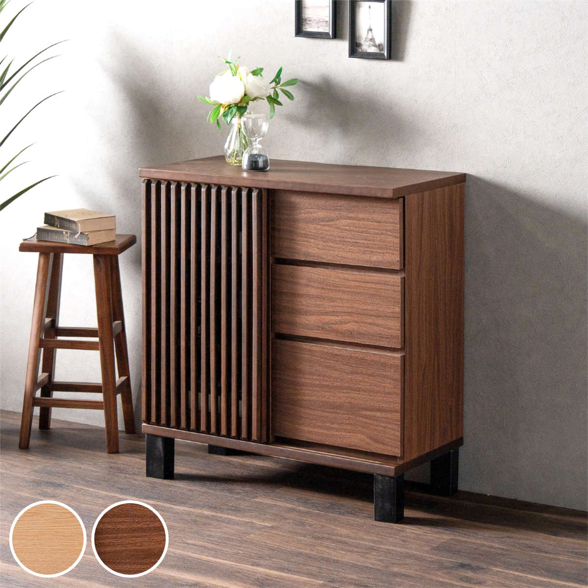 ■サイドボード 幅79.2cm 木目調 飾り格子 引き出し 脚付き お掃除ロボット対応 ( リビングボード キャビネット 棚 ラック 可動棚 格子デ