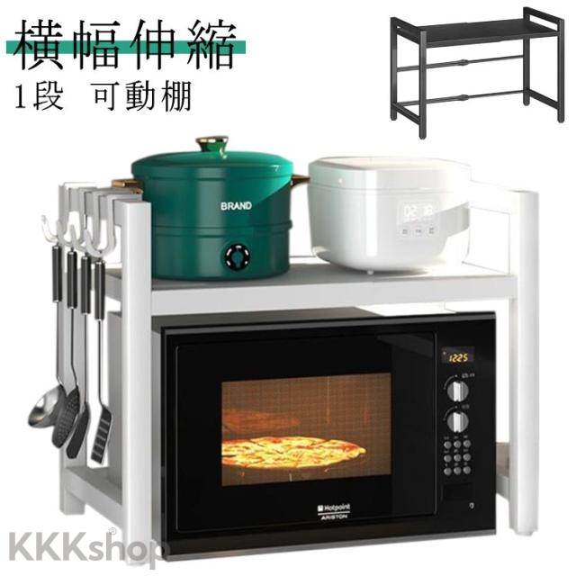 レンジ上ラック レンジ台 レンジ棚 電子レンジ 1段 幅40?60cm 高さ調整 棚 キッチン収納 大型レンジ対応 炊飯器 収納 伸縮式 トースター レンジ置台 卓上 カウンター上 ラック 卓上 調味料ラック シンプル キッチンラック