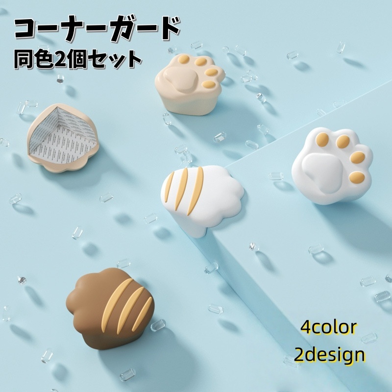 ■コーナーガード 2個セット コーナークッション 粘着タイプ 角ガード 怪我防止 ベビーガード 猫の手 肉球 赤ちゃん 机 棚 テ