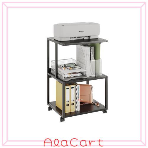 ■Mexin プリンター台 3段 ワゴン キャスター付きデスク下収納 木製 棚 コピー機置き台 プリンタスタンド 組み立て簡単 耐荷重75kg ブラッ