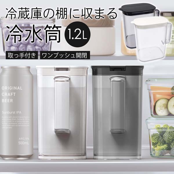 ■送料無料! 冷水筒 1.2L 冷蔵庫 棚/ポケットに入る 耐熱 スリム 食洗機対応 持ち手付き プラスチック 洗いやすい 広口 【 キッチン用品