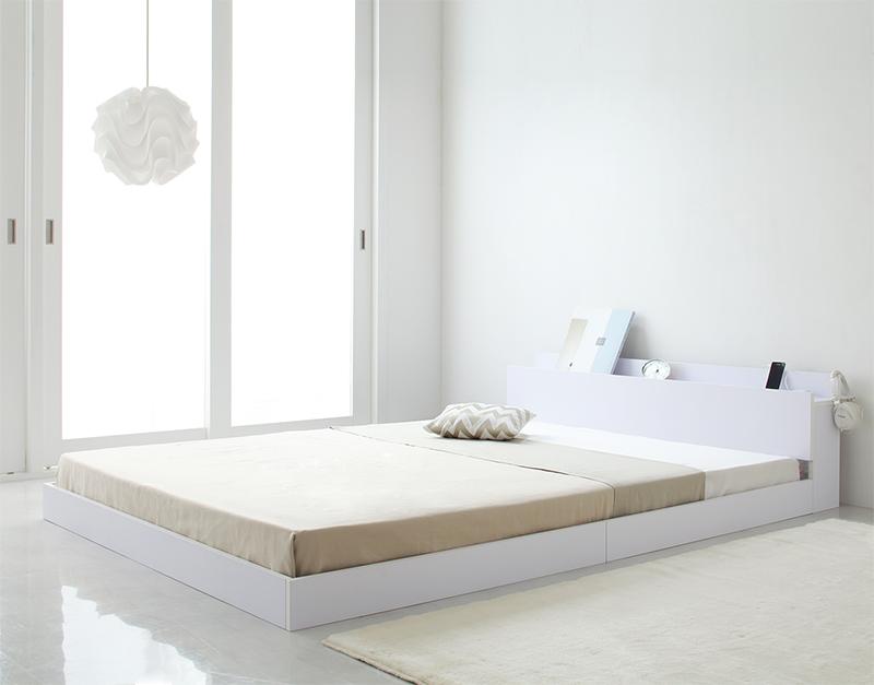 ■棚・コンセント付き フロアベッド 〔IDEAL〕アイディール 〔プレミアムポケットコイルマットレス付き〕 セミダブル 〔マットレス色〕ホワ
