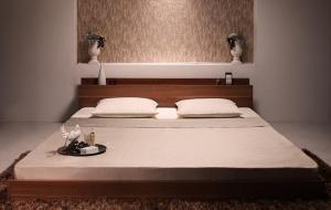 ■シングルベッド 木目 茶色 ウォルナットブラウン 茶 棚・コンセント付きフロアベッド プレミアムボンネルコイルマットレス付き 組立設置