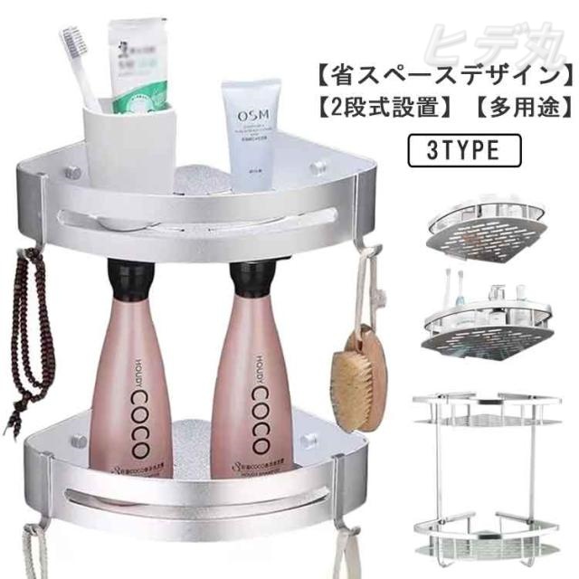 シャンプーラック 三角 浴室用 バス用品 コーナーラック 2個セット ラック バスラック お風呂 浴室用コーナーラック バスルーム 棚 錆びない 簡単収納 ステンレスラック 水切り設計 サビ防止 壁掛け 強力粘着固定 穴あけ不要