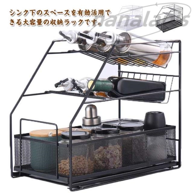■スライド 引き出し 斜め キッチンラック 省スペース 棚下収納 シンク下 調味料 ラック 3段 引出し スライドラック シンク下 棚 スリム シ